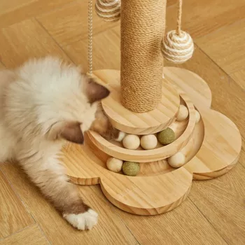 Pine Wood Cat Scratcher Tower with Interactive Turntable Balls